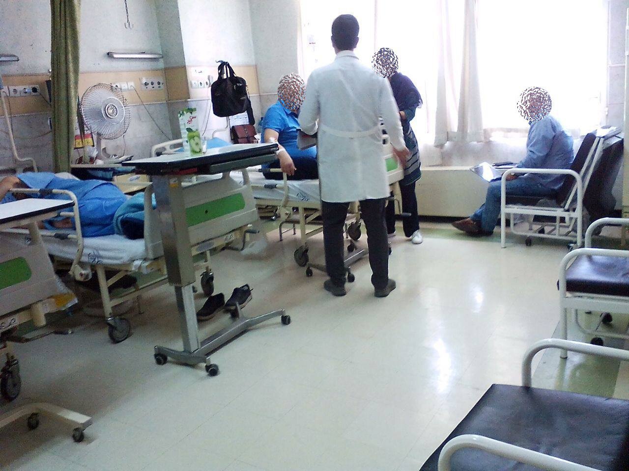 براساس گزارش و تصویری که همراهان بیماران در اختیار مناطقآزاد قرار دادهاند، با وجود شدت گرما و فضای سخت و سنگین بیمارستان این بخش هیچ وسیلهای برای تهویه و مطبوع کردن هوا ندارد تا جایی که همراهان بیماران مجبور شدهاند از منازلشان پنکه بیاورند.