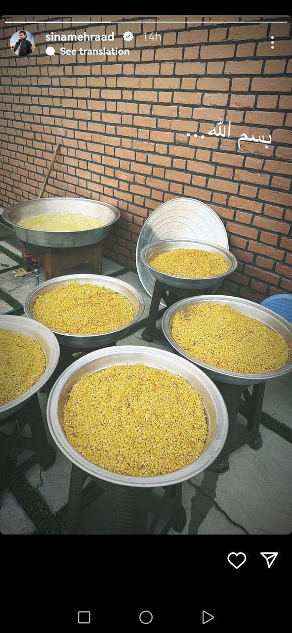 به گزارش خبرگزاری مناطقآزاد، سینا مهراد با انتشار تصویری از دیگ غذا در ظهر عاشورا فعالیت خود ب