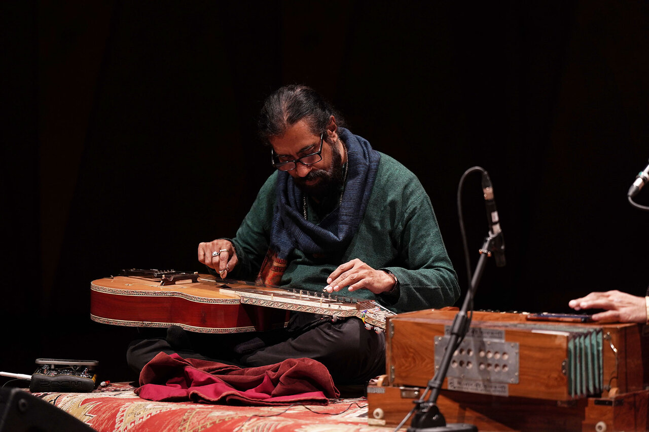 من سه گونه متفاوت موسیقی هندی را با موسیقی محلی و صوفی ترکیب و از همه اکتاوها استفاده می کنم میکنم. در کلاسیک هندی به آن سپتاک میگوییم. یعنی در اکتاو پایینتر. سعی می کنم آوازم را از نت پایین شروع کنم و تا سه اکتاو بالا ببرم. از بمترین نت شروع میکنم و از فرش به عرش می روم و در تمام این مسیر، هارمونیوم همراه من است. این جوهر اصلی موسیقی آوازی هندو-ایرانی است.