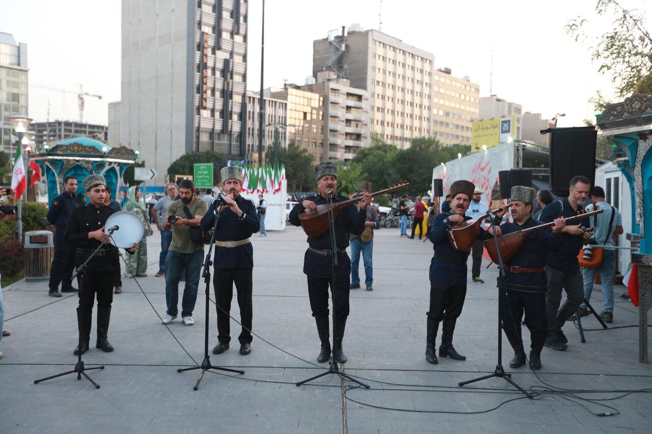 نرگس کیانی: «آی ایرانیم آی ایرانیم، سنه قوربان شیرین جانیم» این بخشی از نوایی بود که روز دوشنبه دوم تیرماه زیر سایه جنگ در میدان هفت تیر تهران طنینانداز شد. در این روز عاشیق احد ملکی (خواننده، نوازنده و سرپرست گروه «عاشیقلار میشو»)، حکمعلی کلهر (نوازنده قوپوز)، محمد نورزاده (نوازنده بالابان) و مرتضی مرشدی (نوازنده قاوال) به نام ایران، برای تهران خواندند و نواختند. آنها پس از علی قمصری و گروهش؛ حمیدرضا یوسفی و کامران منتظری، گام دوم اجراهای خیابانی موسیقی زیر سایه جنگ را برداشتند. اجراهایی که تلاش اجراکنندگان و متولیانش بر کاستنِ حتی مقداری اندک از دلهرهای است که این روزها تجربه میکنیم. تلاشی که نادره رضایی، معاون امور هنری وزیر فرهنگوارشاد اسلامی در موردش به مناطقآزاد میگوید: «ما به عنوان کسانی که موظف به انجام وظیفه خود بهعنوان متولی امر در حوزه هنر هستیم تلاش میکنیم برای گذر از این شرایط و تابآوری بیشتر، کمک حال مردم باشیم.» حضور اقشار گوناگون در این اجراها که سومینِ آن روز سهشنبه، سوم تیرماه توسط گروه محسن آقایی در باغ فردوس برگزار میشود از جمله نکات قابل توجه است. کسانی که اگرچه تعدادشان چندان زیاد نیست اما آرام شدن دلهایشان حتی برای ساعتی بسیار ارزشمند است. ازجمله حاضران در این اجرا نادره رضایی معاون امور هنری وزیر فرهنگوارشاد اسلامی، بابک رضایی مدیرکل دفتر موسیقی، محمدعلی مرآتی مدیرعامل انجمن موسیقی، رضا دبیرینژاد مدیر موزه هنرهای معاصر، نیکنام حسینیپور مشاور وزیر و رئیس مرکز روابط عمومی و اطلاعرسانی وزارت فرهنگوارشاد اسلامی، وحید آگاه مشاور حقوقی و دبیر کارگروه حقوقی معاونت امور هنری و… بودند.