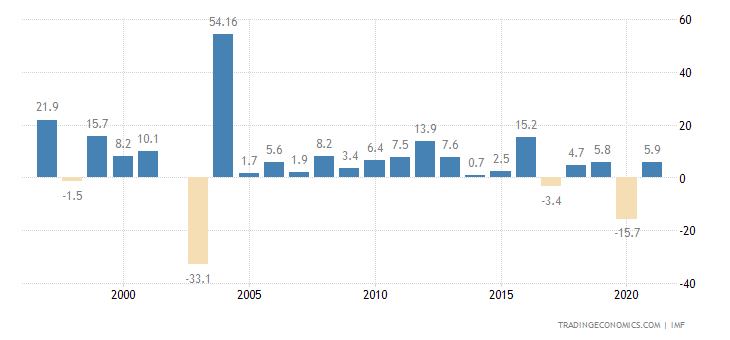 نمودار رشد اقتصادی عراق در ۲۵ سال گذشته (بر اساس دادههای بانک جهانی)