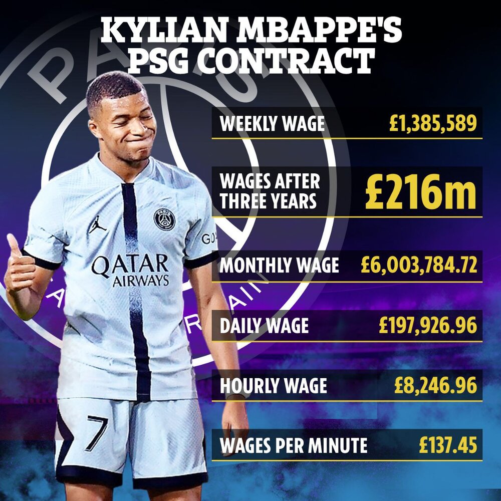 او در مصاحبه اخیر خود مدعی شد ماندن در پاریس هیچ ربطی به مسائل مالی نداشته و دلایل دیگری برای عدم ترک تیم فرانسوی دارد. پس از این اتفاق رسانهها تصویری از دستمزد نجومی این ستاره فرانسوی منتشر کردند که بعید است تیمی جز پاریسنژرمن توانایی پرداخت آن را داشته باشد. براساس اخبار منتشر شده، امباپه که قراردادی سه ساله با پاریس بسته در پایان سال ۲۰۲۵ مبلغ ۲۱۶ میلیون پوند از این تیم دریافت خواهد کرد!