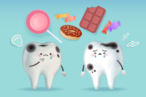 آبنباتها جزو مضرترین خوراکیها برای سلامت دندان هستند، چرا که خاصیت چسبندگی موجود در این خوراکی میتواند با نفوذ در میان دندانها و تغذیهی باکتریها و آزادسازی اسید موجب ایجاد پوسیدگی و تغییر رنگ دندان شود.