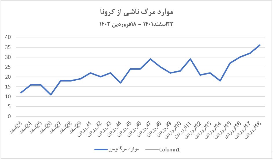 همانطورکه از نمودار اول مشخص است از ۲۳ اسفند سال گذشته روند صعودی مرگومیرهای ناشی از کرونا تا امروز ادامه دارد، روندی که از ابتدای اسفند ۱۴۰۱ میشد آن را حدس زد. همان روزها بود که هادی یزدانی، پزشک، در گفتوگویی به مناطقآزاد گفت: «با حجم زیاد مراجعه بیماران سرپایی روبهرو هستیم، بهنظرم با درنظر گرفتن علائم و سیر جهانی تحول ویروسها این مراجعههای اخیر به مراکز درمانی نشانههای ابتلا به کووید است.»